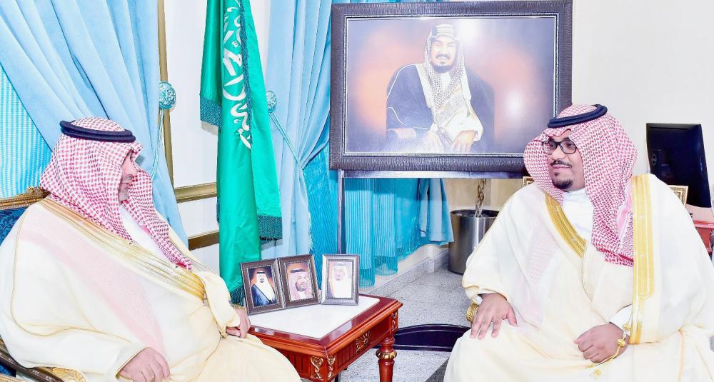 نائب أمير نجران خلال لقائه رئيس فرع النيابة العامة بالمنطقة سعد الشهراني. (عكاظ)