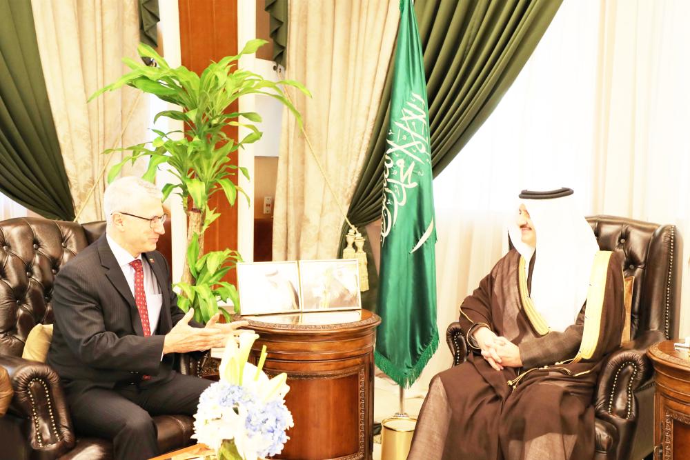 الأمير سعود بن نايف مستقبلا سفير فنزويلا. (عكاظ)