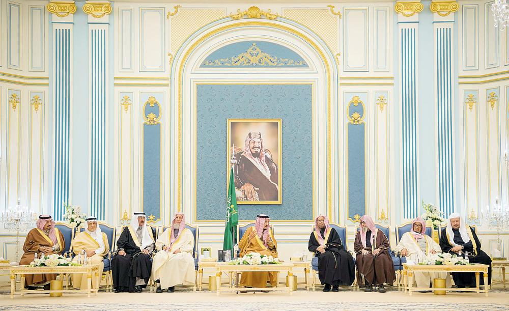 كما استقبل خادم الحرمين الشريفين في قصر اليمامة بالرياض أمس الأمراء، ومفتي عام المملكة والعلماء، وجمعا من المواطنين الذين قدموا للسلام عليه.