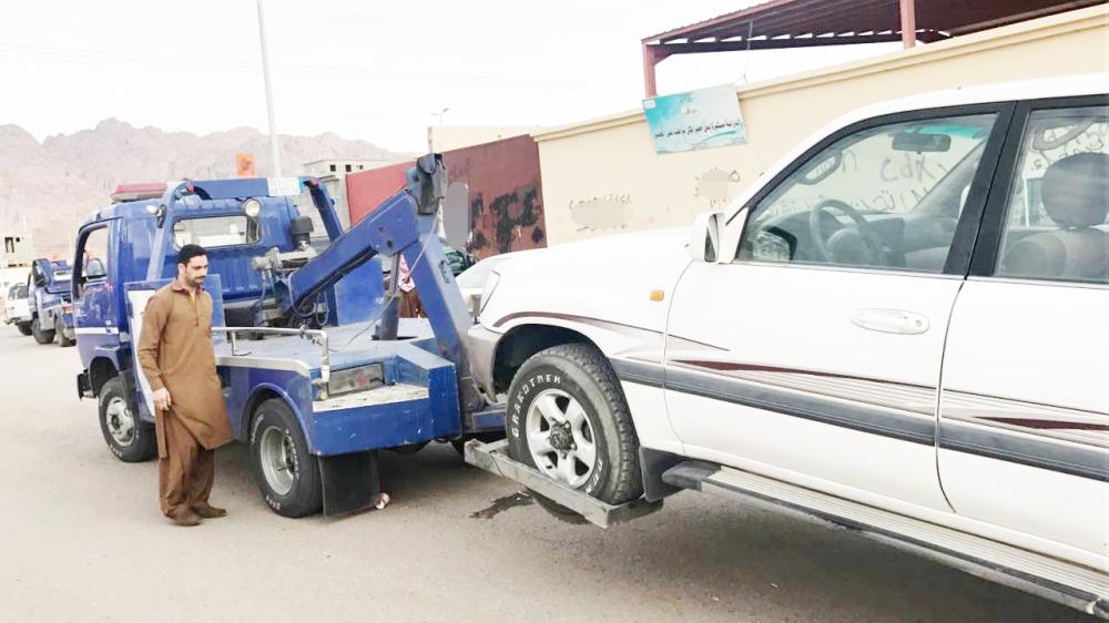 حملة مرور حائل على السيارات المخالفة. (عكاظ)