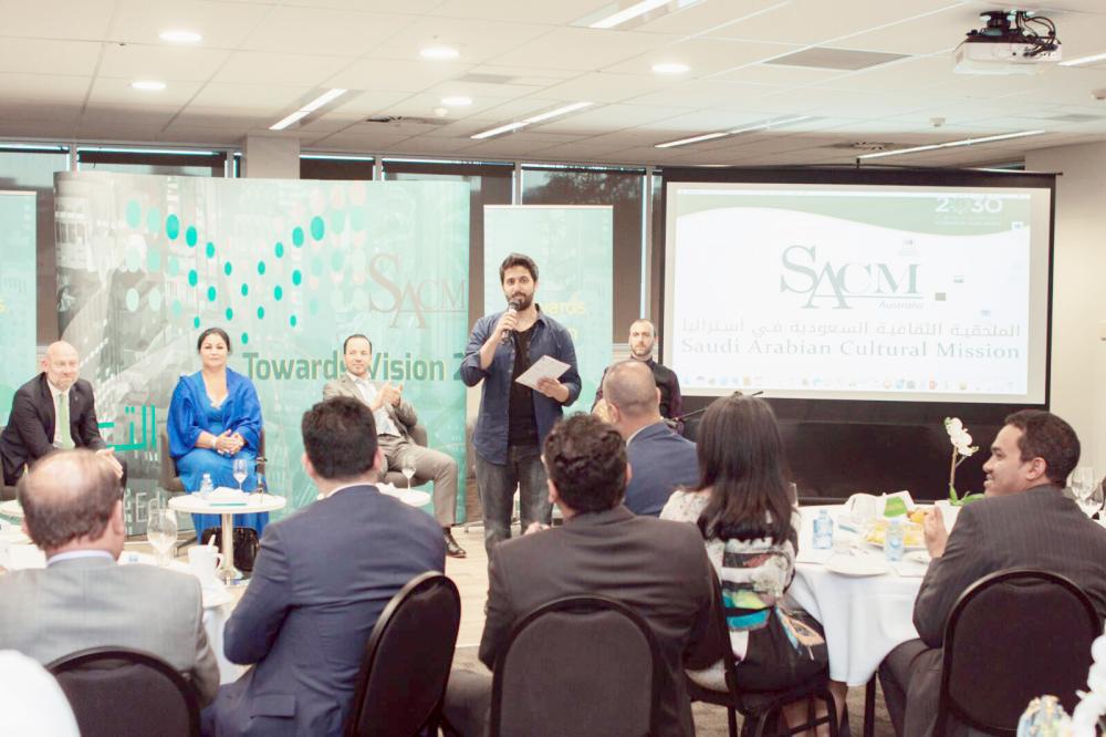 وكان أستاذ اللغة العربية في جامعة غرب سيدني، الدكتور مصطفى البيب قدم ورقة علمية بعنوان «سياسة اللغة لدى العائلة»، فيما شاركت التشكيلية فاطمة كيليين بمعرض فني مصحوب بمحاضرة عن الرسائل الإنسانية التي يحملها الفن التشكيلي العربي، إضافة إلى مشاركة الفنان التشكيلي عبدالملك الخالدي بمعرض سعودي. إلى جانب مشاركة الطالب المبتعث محمد العتيق بمعرض لوحات عن الخط العربي، والموسيقي مارك جونز بقطع موسيقية عربية. واطلع الضيوف خلال الاحتفالية على فيلم وثائقي أعدته الملحقية عن زيارة فريق عمل من الملحقية لمدرسة الملك خالد في مدينة ملبورن وأكد الملحق الثقافي الدكتور هشام خداوردي أن الملحقية حريصة على تنظيم الفعاليات واستثمار المناسبات العالمية والأسترالية بالشكل الذي يعزز مكانة وجهود السعودية في نشر ثقافة السلام والتسامح وتأكيد علاقات الصداقة والاحترام بين المملكة وشعوب العالم.