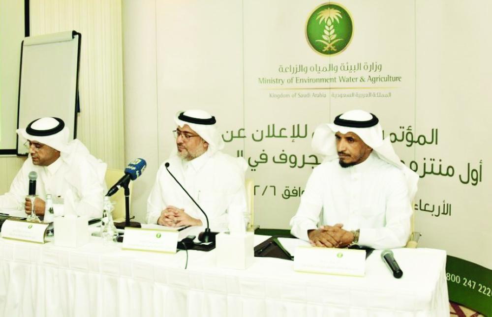 المؤتمر الصحفي للمهندس العيادة. (عكاظ)