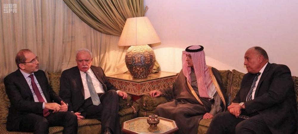 كما شارك الجبير في لقاء رباعي ضم وزراء خارجية جمهورية مصر العربية والمملكة الأردنية الهاشمية ودولة فلسطين.
