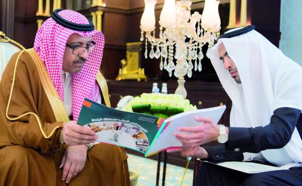 أمير الباحة مطلعا على تقرير مجلس شباب المنطقة. (عكاظ)