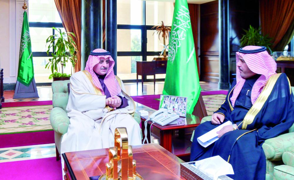 الأمير فهد بن سلطان خلال لقائه سالم الوباري. (عكاظ)