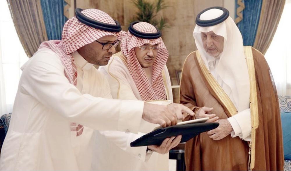 الأمير خالد الفيصل خلال اطلاعه على إنجازات ومبادرات فرع وزارة العمل بالمنطقة. (عكاظ)