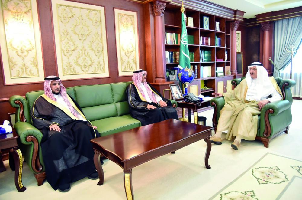 أمير جازان خلال استقبال مدير عام الهلال الأحمر. (عكاظ)