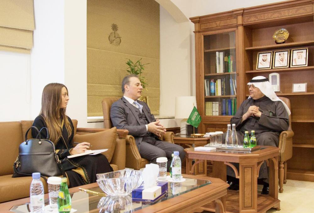 استعرض وكيل وزارة الخارجية للشؤون السياسية والاقتصادية السفير الدكتور عادل بن سراج مرداد، في مكتبه بمقر الوزارة أمس (الإثنين)، مع سفير جمهورية إيطاليا لدى المملكة لوكا فيراري، العلاقات الثنائية وسبل تطويرها، إضافة إلى بحث مجالات التعاون المشترك بين المملكة العربية السعودية وجمهورية إيطاليا.