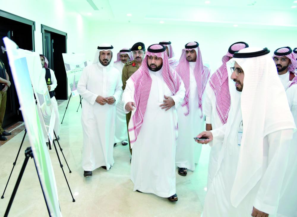 نائب أمير منطقة جازان يستمع لشرح عن أحد المشاريع. (عكاظ)