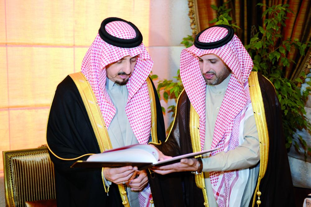 أمير عسير يطلع على التقرير السنوي لفرع الهلال الأحمر. (عكاظ)