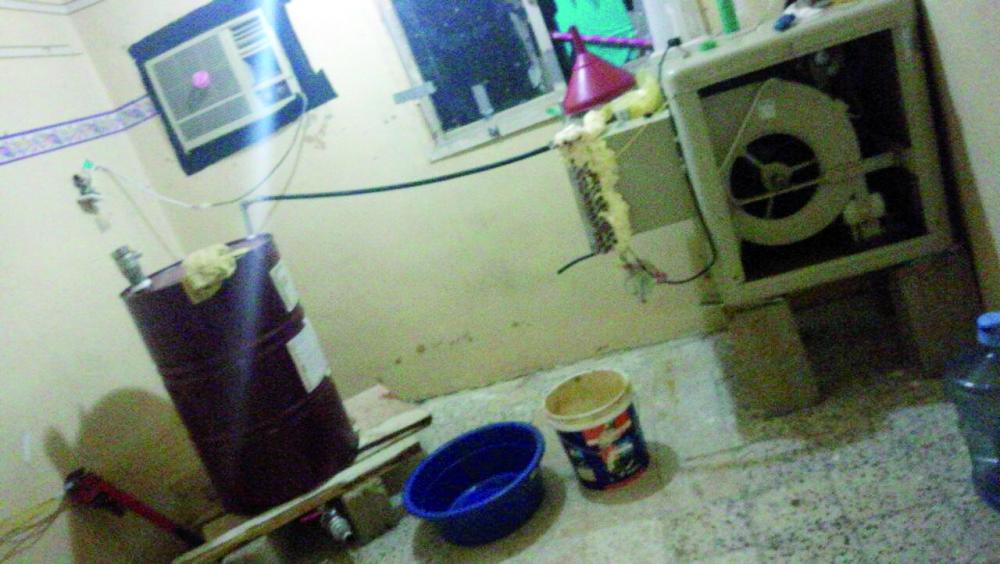 أدوات مستخدمة في تصنيع الخمور بالمصنع المضبوط. (عكاظ)