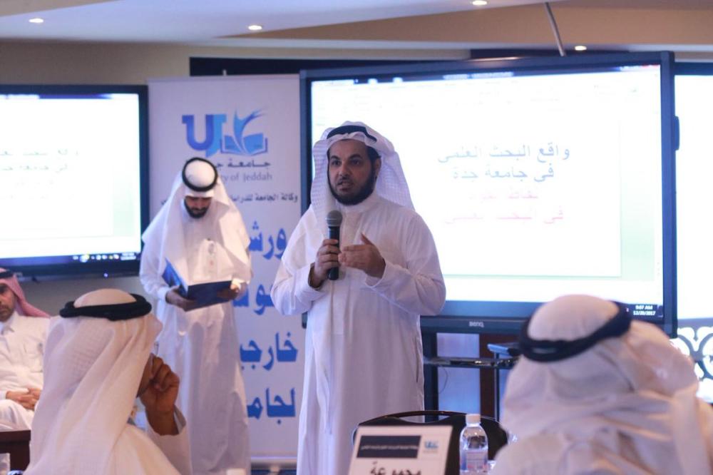 جاء ذلك خلال افتتاحه اليوم (الأربعاء) ورشة عمل (نحو شراكات خارجية فاعلة)، تناولت واقع البحث العلمي في جامعة جدة عبر 8 محاور رئيسية، شملت خدمة الاقتصاد المعرفي، والشراكة الدولية، والنشر العلمي المتميز والقوى البشرية والاتجاهات البحثية المدعومة من الجامعة والبنية التحتية، والفرق البحثية، والخطط التسويقية للشراكات الصناعية والمجتمعية.