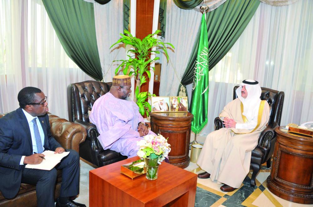 الأمير سعود بن نايف مستقبلا السفير الغاني أمس. (عكاظ)