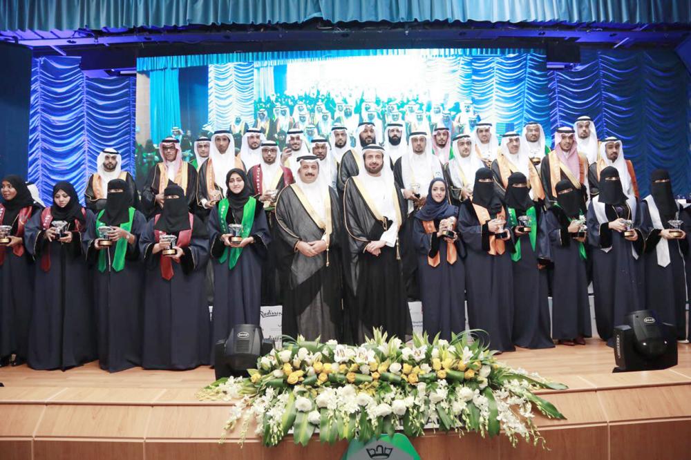 الربيعة يتوسط خريجي الابتعاث والإيفاد. (عكاظ)
