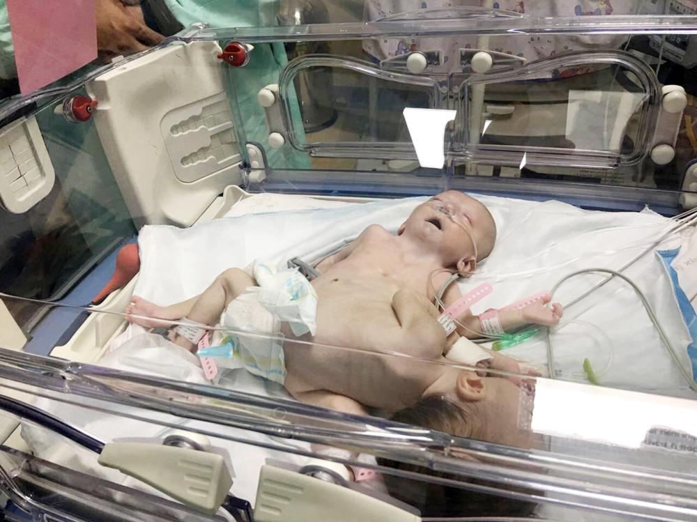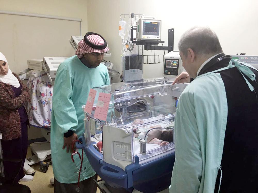 وقام نائب رئيس البعثة السعودية في عمّان محمد العتيق ورئيس قسم الشؤون الصحية ماجد الخيبري وعدد من موظفي السفارة باستقبال التوأم السيامي ووالدهما فور وصولهم إلى الأردن عبر معبر أريز، ونقل التوأم إلى مستشفى المركز العربي الطبي للاطمئنان على حالتهما الصحية، وتم وضعهما في قسم الخداج نتيجة لإصابتهما بحالة إعياء شديد.