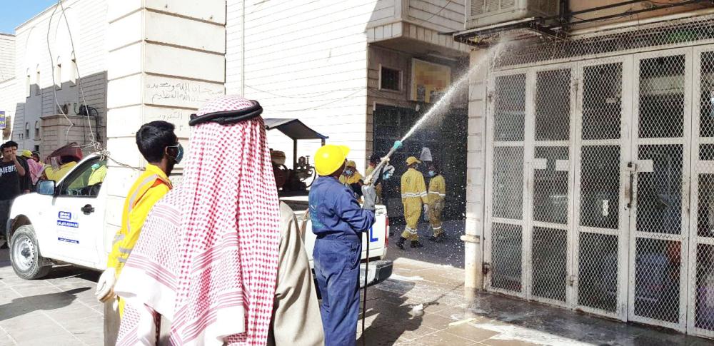 فرق ميدانية أثناء الرش والتعقيم. (عكاظ)