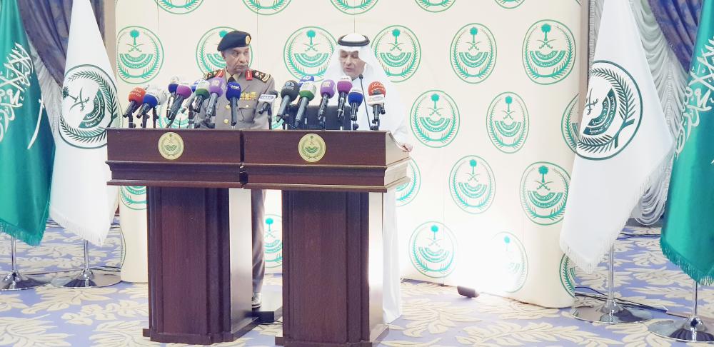 اللواء التركي والعطية خلال المؤتمر الصحفي. (تصوير: ماجد الدوسري)
