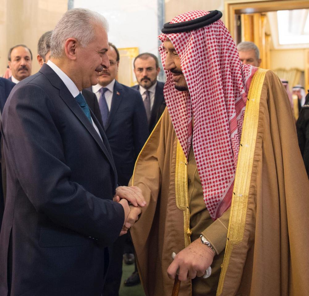 استقبل خادم الحرمين الشريفين الملك سلمان بن عبدالعزيز في قصر اليمامة في الرياض اليوم، دولة رئيس وزراء جمهورية تركيا بن علي يلدريم.