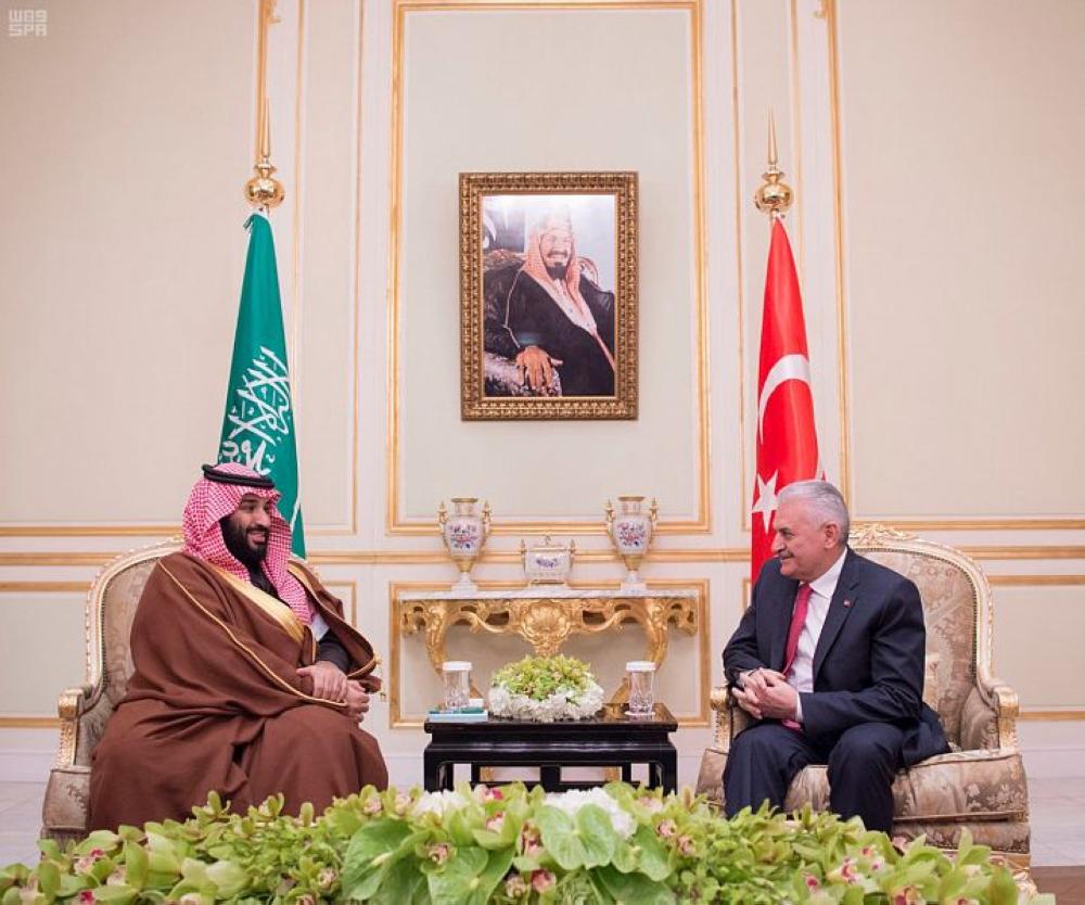 استعرض ولي العهد نائب رئيس مجلس الوزراء وزير الدفاع الأمير محمد بن سلمان بن عبدالعزيز اليوم (الأربعاء) في الرياض، مع رئيس وزراء جمهورية تركيا بن علي يلدريم، العلاقات الثنائية بين البلدين وفرص تنميتها، إضافة إلى بحث تطورات الأحداث الإقليمية.