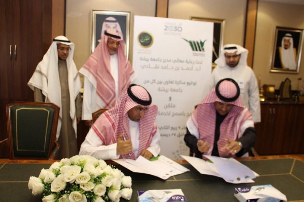 وقعت جامعة بيشة أمس (الأربعاء) 9 ربيع الآخر 1439، مذكرة تعاون مع برنامج باسمح لخدمة المجتمع «متقن» التابع لإحدى المجموعات التجارية والصناعية، في إطار برامج الشراكة التي تنفذها الجامعة مع المؤسسات المجتمعية من أجل تمكين منسوبيها وطلابها من المهارات الحياتية والمهنية والبرامج الإدارية.