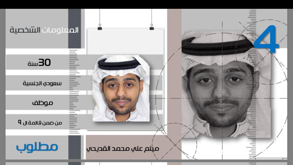 يعد المطلوب ميثم القديحي أحد الإرهابيين الثلاثة المتورطين في اغتيال الشهيد، من أخطر المطلوبين لتورطه في جرائم كبيرة شهدتها العوامية، ومنها قيادة هجمات مسلحة على رجال الأمن اعترف عدد من الموقوفين على خلفية تورطهم في الأحداث الإرهابية لجهات التحقيق عن قيام المطلوب ميثم بقيادة هجوم مسلح على مركز شرطة تاروت وإطلاق النار على إحدى الدوريات الأمنية أثناء مرورها بمدخل القطيف.