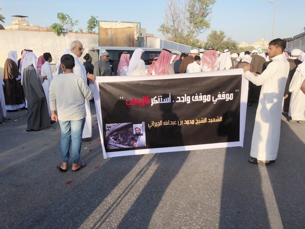 وسط أجواء مفعمة بالحزن والأسى انطلق جثمان قاضي دائرة الأوقاف والمواريث بالقطيف الشيخ الشهيد محمد الجيراني محمولا من مغسلة مقبرة تاروت إلى مثواه، بمشاركة المئات من أبناء المحافظة ومدن الشرقية المختلفة.