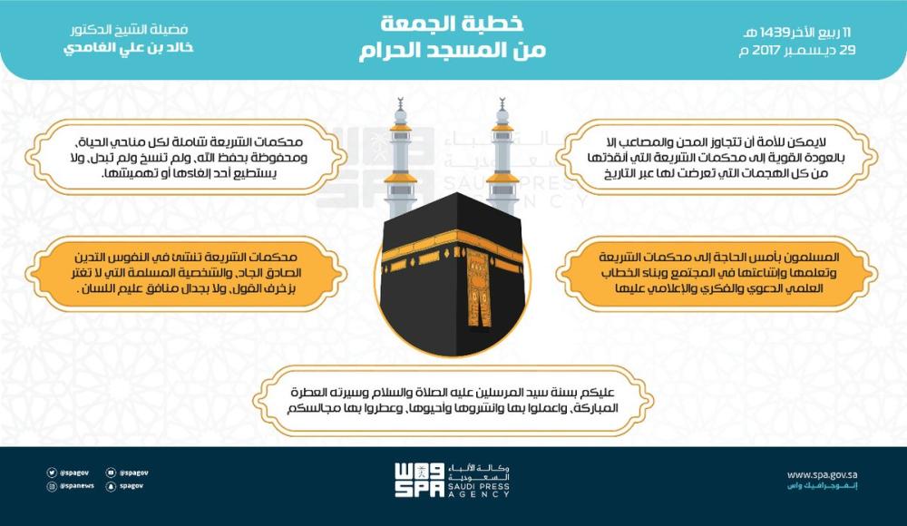 وقال فضيلته في خطبة الجمعة التي ألقاها اليوم بالمسجد الحرام : إن من العوامل التي كتب الله بها الخلود والبقاء والدين والإسلام وضمن له الحفظ والصيانة من التحريف والتبديل أن جعله سبحانه قائماً على أصول ثابته وأركان متقنة ومحكمات مشيدة كفلت لدين الاسلام أن يبغى عزيزا شامخاً ثابتاً ثبوت الرواسي بل أشد مع كل ما تعرض له هذا الدين من عاديات الزمن والمحاولات الحاقدة من الأعداء التي مارسوها ضده لهدمه ونقضه وتشويهه أو صهره وتذويبه منذ فجر الإسلام وإلى عصورنا هذه المتأخرة التي يشهد العالم فيها هذا الانفتاح الفكري والثقافي والإعلامي الهائل الذي يشكل في الحقيقة حالة فريدة لم تحصل في تاريخ البشرية قط، وقد أسهم هذا الانفتاح الهائل في عبور آلاف الأفكار المضادة والآراء المتطرفة والثقافات الوافدة والقيم الغريبة على المجتمع المسلم التي كان لها تأثير لا ينكر على عقول وقلوب فئات من الناس مما فتح الباب على مصراعيه لفتن الشبهات والشهوات أن تنخر في الأمة بغية إضعافها وتجريدها من الوصف العظيم الشريف الذي وصفها الله بها في قوله عزوجل (كُنتُمْ خَيْرَ أُمَّةٍ أُخْرِجَتْ لِلنَّاسِ تَأْمُرُونَ بِالْمَعْرُوفِ وَتَنْهَوْنَ عَنِ الْمُنكَرِ وَتُؤْمِنُونَ بِاللَّهِ ) , ( وَلَوْ آمَنَ أَهْلُ الْكِتَابِ لَكَانَ خَيْرًا لَّهُم مِّنْهُمُ الْمُؤْمِنُونَ وَأَكْثَرُهُمُ الْفَاسِقُونَ) .