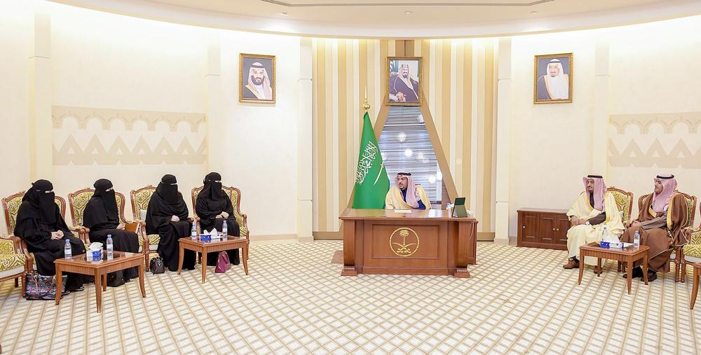 أمير القصيم خلال استقباله مجلس إدارة جمعية الملك عبدالعزيز «عون» النسائية في بريدة.