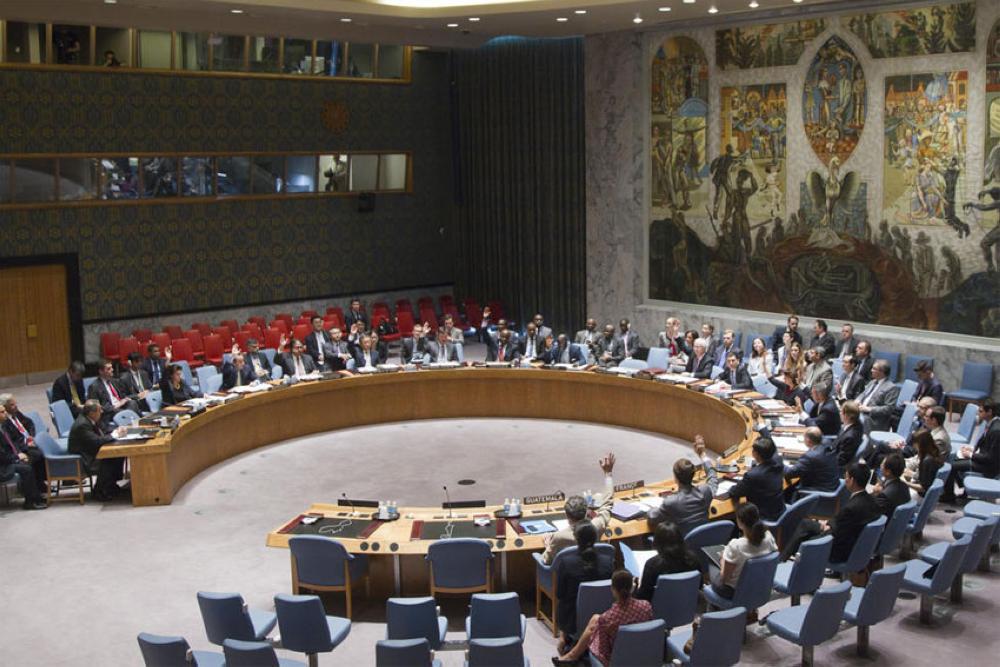 وتولى سفراء الدول الست، وهم خمسة رجال وامرأة واحدة هي سفيرة بولندا يوانا فرونيتشا، وضع أعلام بلدانهم بين أعلام الدول التسع الاخرى الأعضاء في المجلس عند مدخل قاعة الاجتماعات.