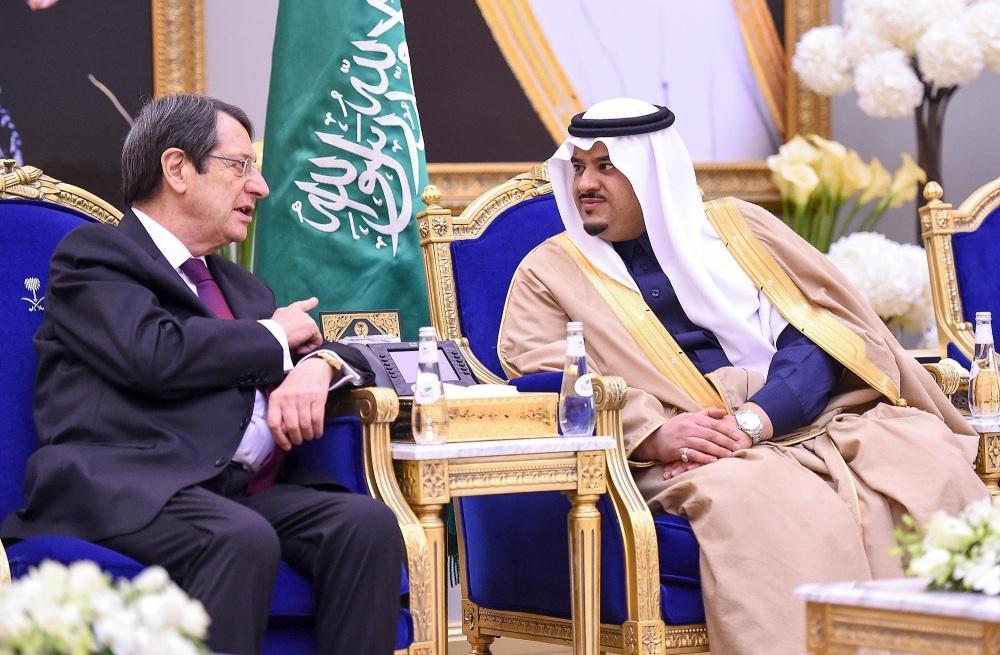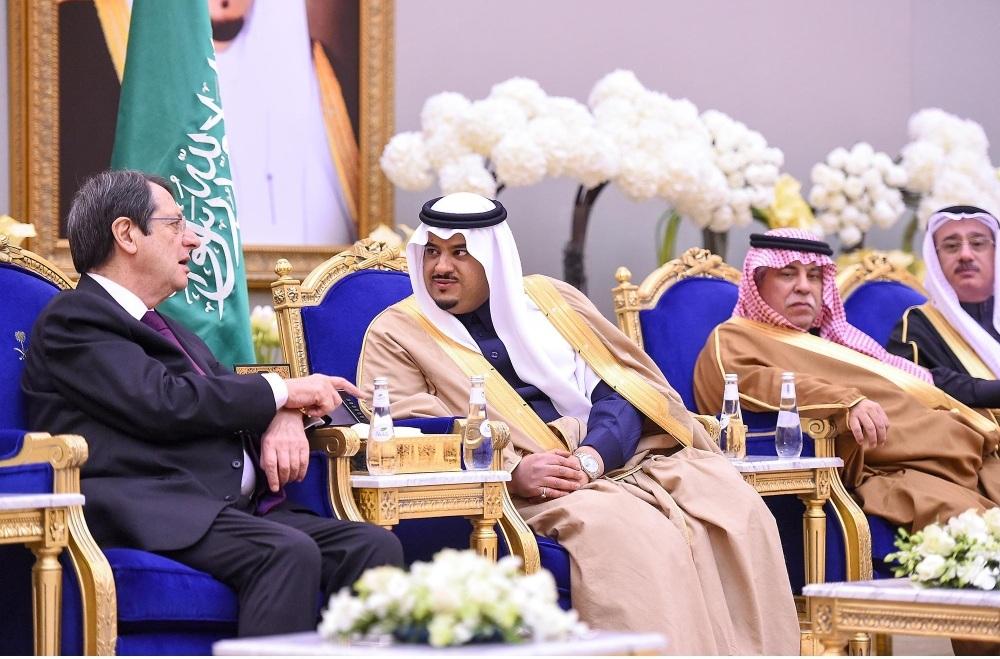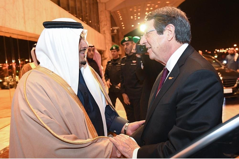 وكان في وداعه بمطار الملك خالد الدولي الأمير محمد بن عبدالرحمن بن عبدالعزيز، نائب أمير منطقة الرياض، ووزير التجارة والاستثمار الدكتور ماجد بن عبدالله القصبي الوزير المرافق، وسفير خادم الحرمين الشريفين لدى جمهوريتي اليونان وقبرص عصام بن إبراهيم بيت المال، وسفير جمهورية قبرص لدى المملكة نيوكس بانايي، ومدير شرطة منطقة الرياض اللواء عبد العزيز الزمامي.