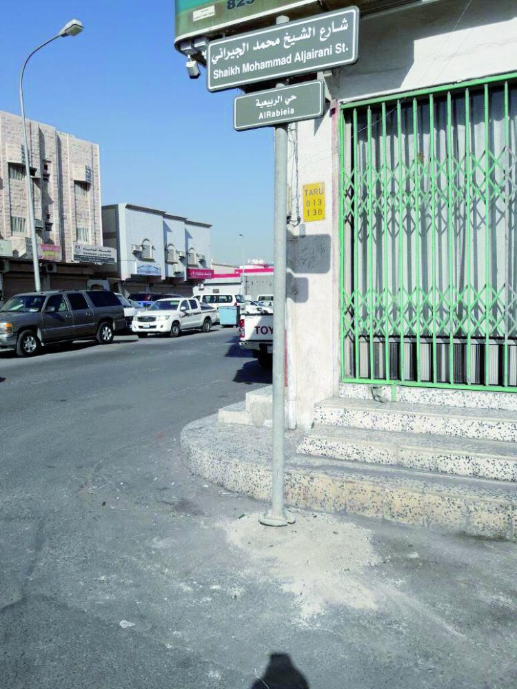 لافتة توضح اسم الشارع المسمى باسم الشيخ محمد الجيراني. (عكاظ)