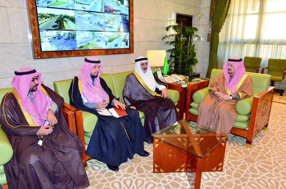 الأمير فيصل بن بندر مستقبلا رئيس وأعضاء جمعية مرافق الإيواء. (عكاظ)