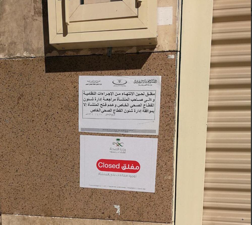 أغلقت وزارة الصحة أمس الأول (الخميس) صيدليتين في المدينة المنورة بسبب عدم وجود ترخيص لهما أو لمزاولة المهنة للصيدلي، كما أغلقت مركز فحص عمالة في خميس مشيط لعدم التقيد بالاشتراطات المنظمة لفحص العمالة الوافدة وعمال الأغذية.