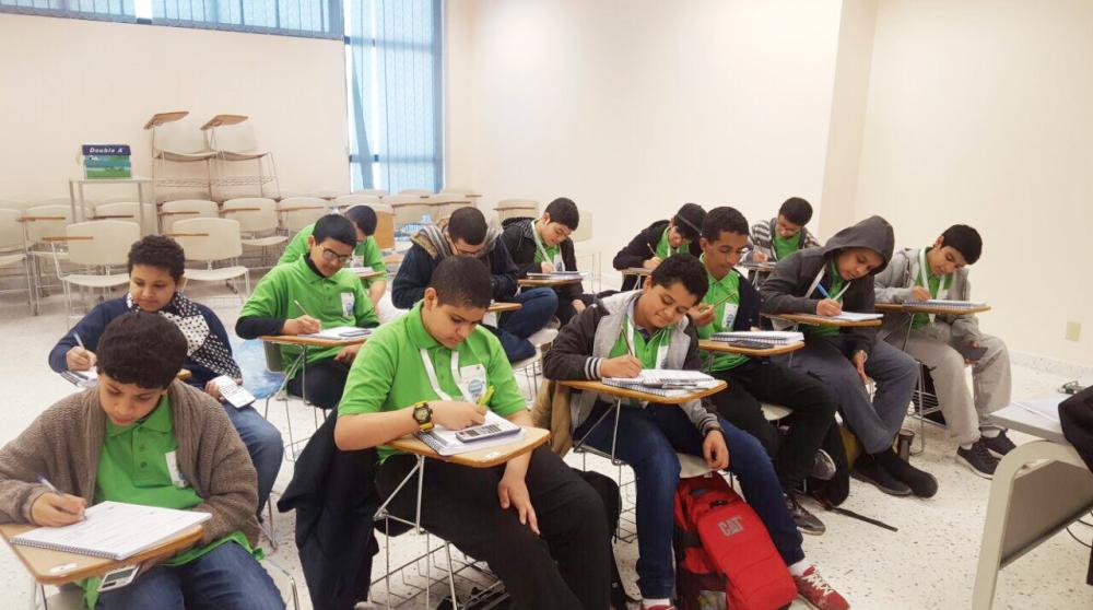 عدد من الطلاب خلال مشاركتهم في الملتقى الشتوي «عكاظ»