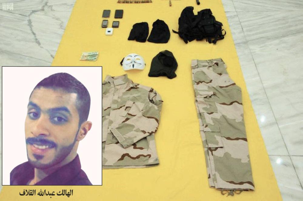 وأوضح الخبير اللواء متقاعد مسفر بن داخل الجعيد أن ضبط بدلة عسكرية خاصة بقوات الجيش قديمة لم تعد تستخدم حاليا وتسلحه بالرشاش ومسدس جلوك بـ 17 رصاصة وإخفاء وجهه بقناع الوجه مؤشر على ما كان ينويه الإرهابي الهالك.