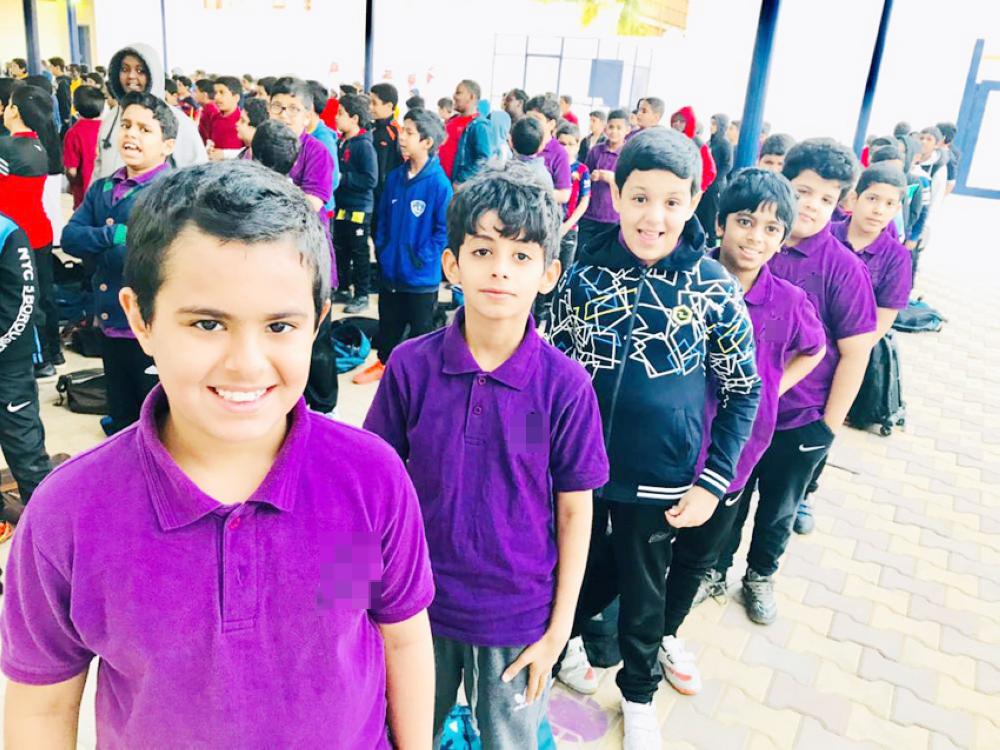 طلاب إحدى المدارس عقب عودتهم من الإجازة. (عكاظ)