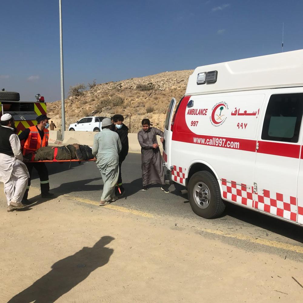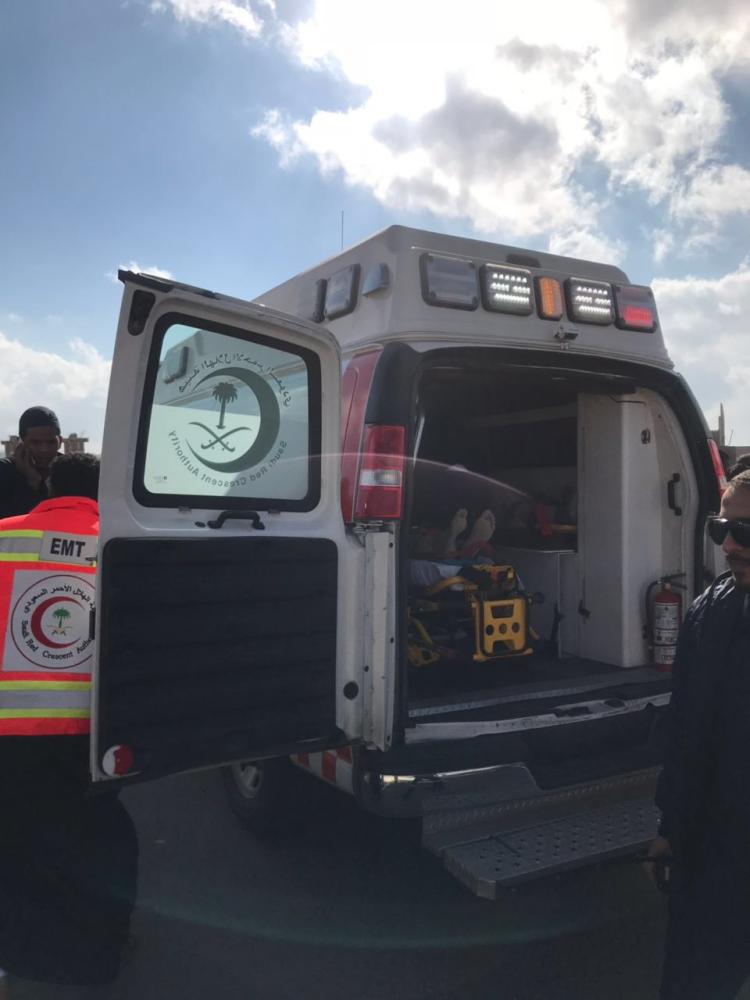وبحسب المتحدث باسم الهلال الأحمر في المنطقة عماد منسي، فإن غرفة العمليات تلقت بلاغا بوقوع الحادثة، وعلى الفور توجهت خمس فرق إسعافية، وعند وصول أول فرقة للموقع اتضح وجود ست إصابات، تم التعامل معها حسب البروتكولات الإسعافية، منها إصابتان حرجتان، فيما صنفت ثلاث أخرى بالمتوسطة، وواحدة بالبسيطة، وباشرت الفرق نقل المصابين لمستشفى الملك فهد بالباحة.
