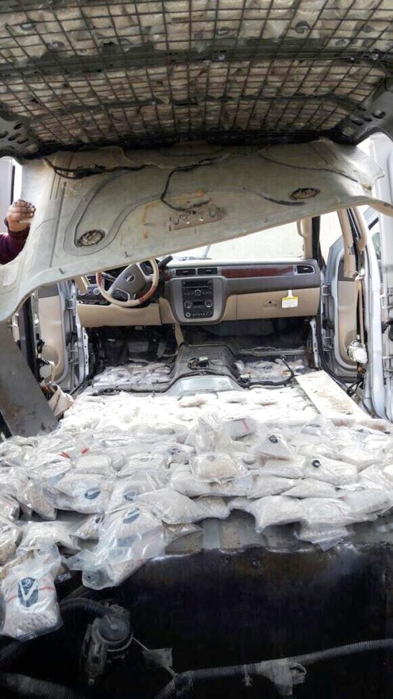 المخدرات بعد ضبطها داخل المركبة. (عكاظ)