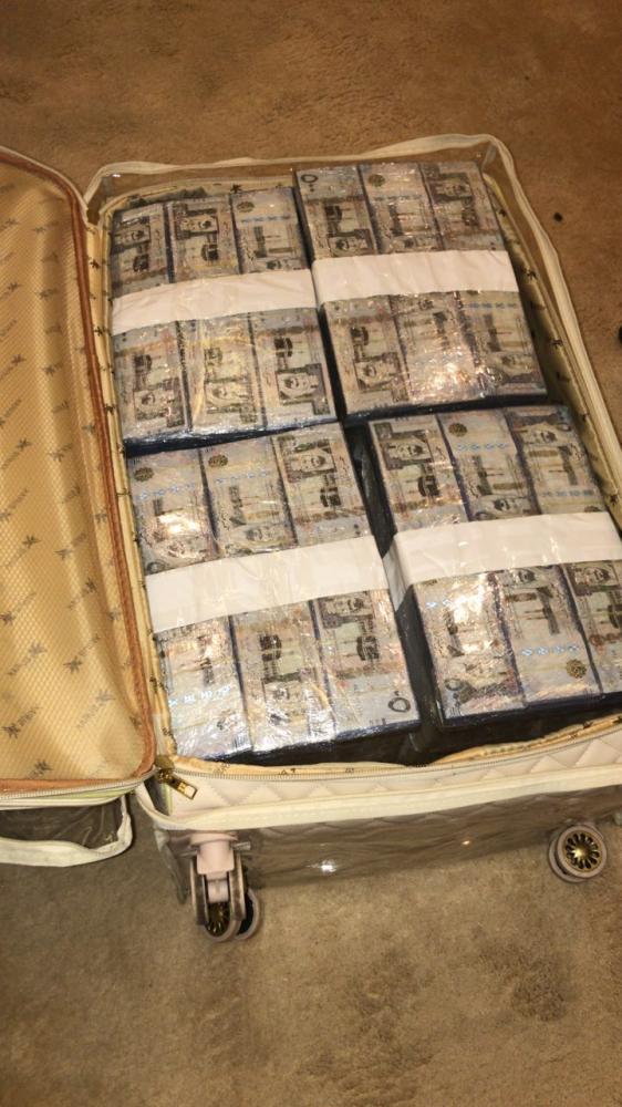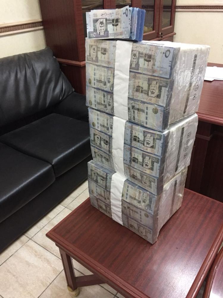 وأكدت شرطة منطقة الرياض، أنه عثر بحوزتهم على أربع صناديق بها مبالغ ماليه يدّعي بأنها تحتوي على 40 مليون ريال، تبين بعد تحريزها بأنها موزعة على فئة 500 ريال في سطحها العلوي ومغلفه بشكل مشابهة للنقود البنكية، وأسفلها قصاصات ورقية كرتونية، كان الغرض منها التحايل فيما بينهم، وبلغت القيمة الفعلية لما تم ضبطه 12 ألف ريال فقط، وجرى إيقافهم وإشعار فرع النيابة العامة بالمنطقة لإكمال اللازم حسب الاختصاص، وفقاً لنظام الإجراءات الجزائية.
