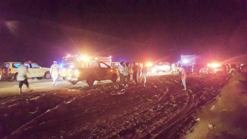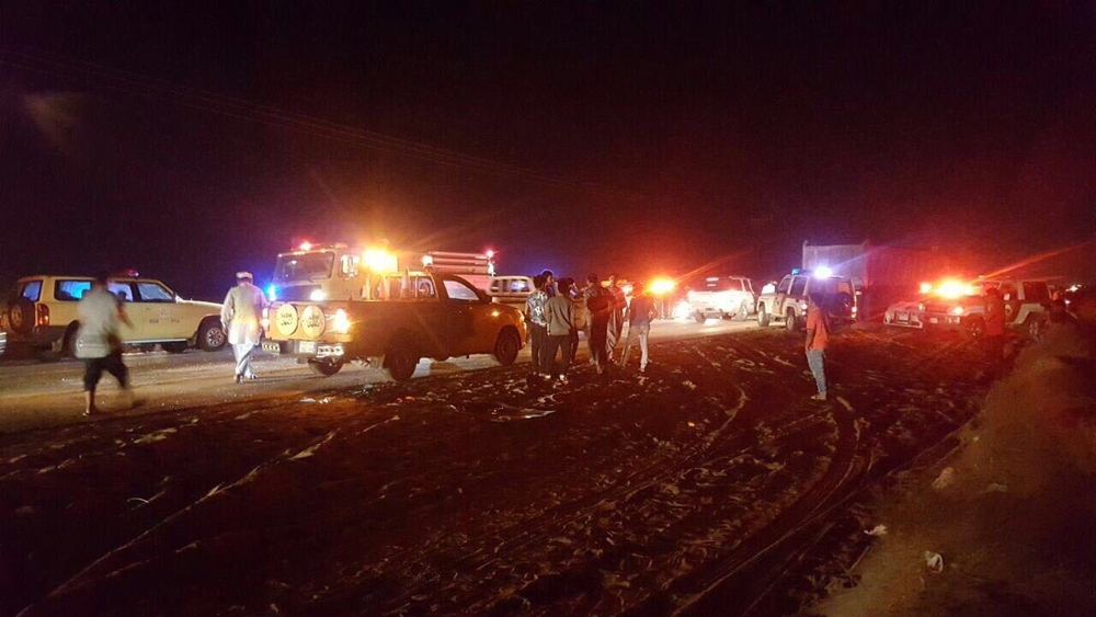 من جانبه أبلغ المتحدث باسم الدفاع المدني في جازان المقدم يحيى القحطاني أن بلاغا ورد عن تصادم على طريق المضايا ـــ الصوارمة، وعند وصول الفرق للموقع اتضح أن الحادثة عبارة عن تصادم سيارة عائلية مع شاحنة ووجود محتجزين في السيارة. وباشرت الفرق الحادثة وحررت المحتجزين، وتبين وجود 6 وفيات، و5 إصابات، وتم نقل الحالات بواسطة إسعاف الهلال الأحمر إلى المستشفى وسجلت حالة وفاة بعد وصولها المستشفى.