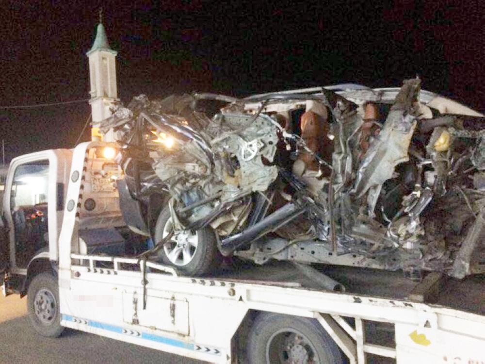 وأبلغ شهود عيان من موقع الحادثة «عكاظ» أن سيارة العائلة اصطدمت من الخلف بشاحنة مصابيحها الخلفية مطفأة تجرها أخرى قرب بلدة المضايا على طريق مظلم ذي مسار واحد بطول 15 كيلومترا. وسبق للأهالي أن طالبوا بضرورة إنارة الطريق الذي يفتقد إلى أدنى متطلبات السلامة، وتكثر فيه الإبل السائبة. وأضاف الشهود أن الأسرة المنكوبة كانت في طريقها لحضور حفلة زفاف، لتتحول فرحتها إلى أمواج من الدموع.