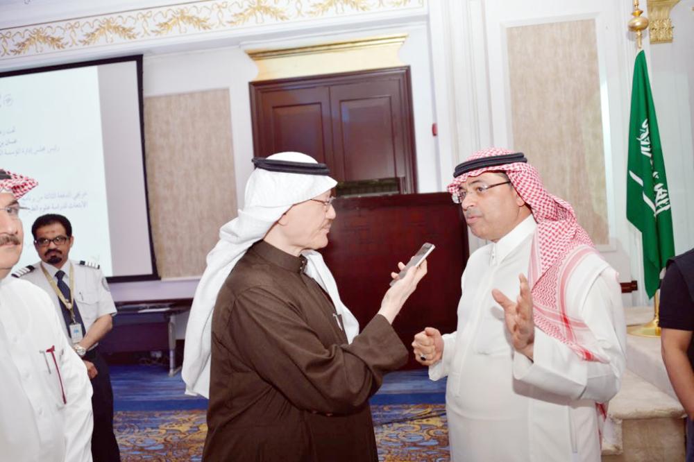 الشبل يتحدث للزميل غزاوي. (عكاظ)