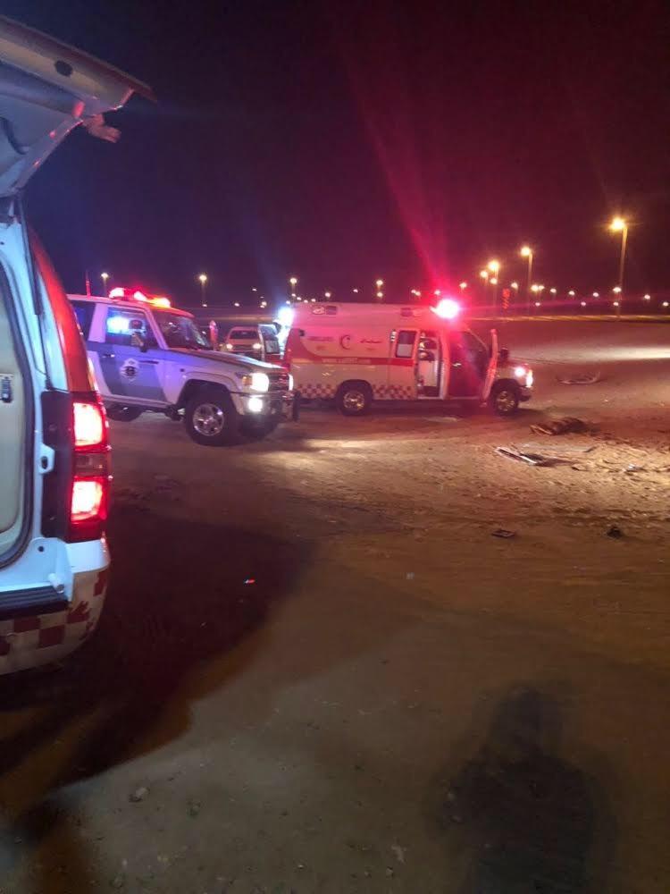 وقال الهلال الأحمر السعودي بحائل في بيان صحفي إنهم دفعوا بفرقتي إسعاف والاستجابة السريعة والقيادة الميدانية إلى الموقع وعند الوصول تبين وجود وفاة 2 و٤ مصابين 2 منهم في حالة خطرة و2 حالتهما متوسطة قدمت لهما الإسعافات الأولية العاجلة ونقلهما إلى مستشفى الملك خالد لتلقي العلاج اللازم، بحسب ما صرح به المتحدث باسم فرع الهلال الأحمر بالمنطقة سلطان البراهيم.