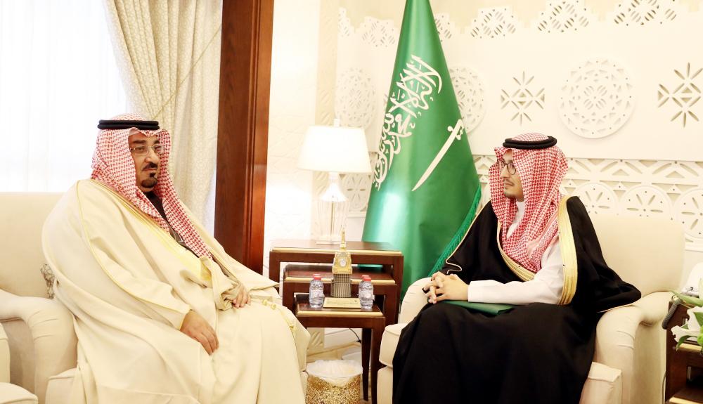 الأمير أحمد بن فهد مستقبلا العميد العزاوي. (عكاظ)