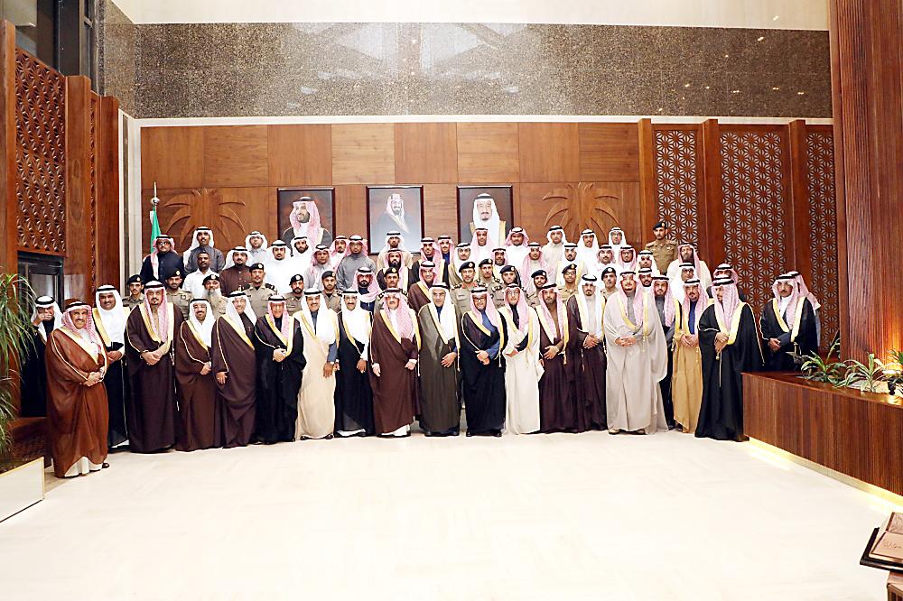 الأمير سعود بن نايف يتوسط أعضاء لجنة مهرجان سفاري بقيق والداعمين. (عكاظ)