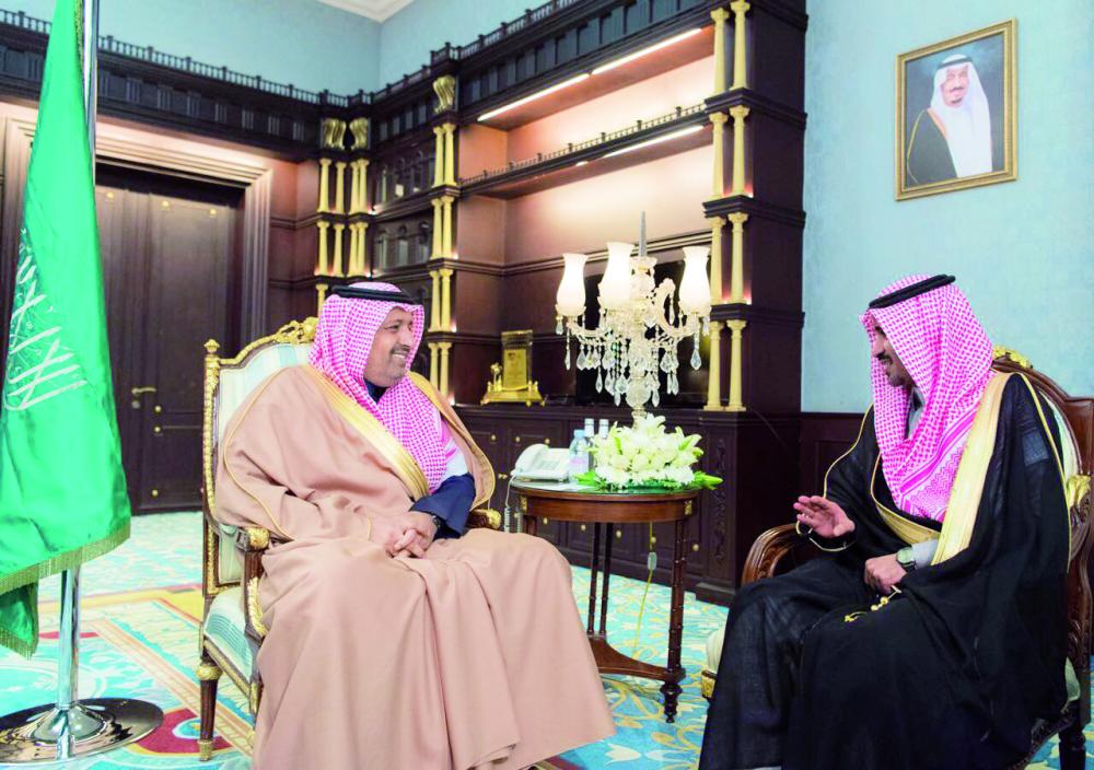 الأمير حسام بن سعود مستقبلا مدير فرع الزكاة والدخل. (عكاظ)