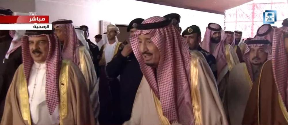 استقبل خادم الحرمين الشريفين الملك سلمان بن عبدالعزيز بحضور الأمير محمد بن سلمان بن عبدالعزيز ولي العهد نائب رئيس مجلس الوزراء المشرف العام على نادي الإبل اليوم الملك حمد بن عيسى آل خليفة ملك مملكة البحرين، والشيخ نواف الأحمد الجابر الصباح ولي عهد دولة الكويت، والشيخ حمدان بن محمد بن راشد آل مكتوم ولي عهد دبي والشيخ سعد بن محمد السعدي وزير الشؤون الرياضية بسلطنة عمان والشيخ سلطان بن سحيم آل ثاني والشيخ مبارك بن خليفة آل ثاني و الشيخ جاسم بن خليفة آل ثاني والشيخ خالد بن خليفة آل ثاني والشيخ فهد بن عبدالله آل ثاني والشيخ خليفة بن مبارك آل ثاني والشيخ عبدالله بن فهد آل ثاني ضيوف الحفل الختامي لمهرجان الملك عبدالعزيز للإبل بالقرية السعودية للإبل بالصياهد الجنوبية للدهناء.