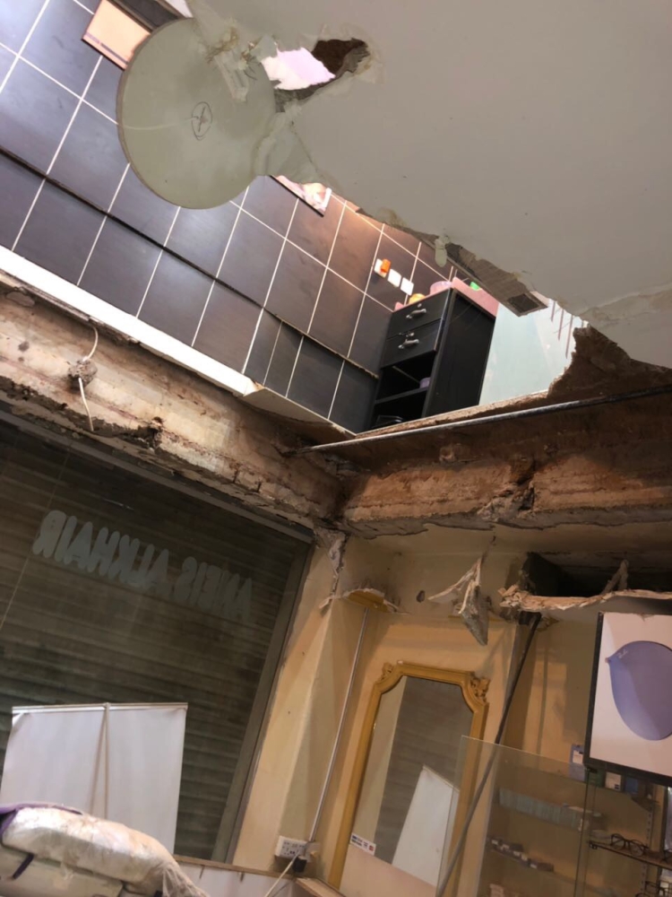 أظهر فيديو تداوله مستخدمو مواقع التواصل الاجتماعي انهيار سقف ميزانين صالون تزيين نسائي بالمدينة المنورة (طريق الأمير عبدالمجيد) من الدور الأولى إلى الأرضي في وقت العمل، وتأثرت المحلات التجارية المجاورة وغرف التزيين النسائي، ووضع لافتة «مغلق للصيانة»، ومباشرة الدفاع المدني والهلال الأحمر الحادثة، ونقل العاملات والإداريات لفرع آخر.