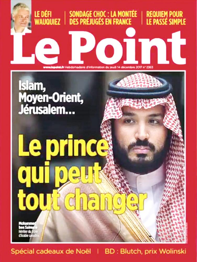 كانت صورة ولي العهد السعودي الأمير محمد بن سلمان بن عبدالعزيز على غلاف مجلة «لو بوان» الفرنسية أخيراً مصحوبة بعنوان لافت: الأمير الذي يمكنه أن يغير الكثير، كافيا أن يقف أمامه المسافرون في المطارات الفرنسية وفي محطات القطارات والحافلات وفي نقاط بيع الصحف والمجلات. وهذا بحد ذاته دعاية إيجابية للسعودية وولي عهدها الأمير الشاب MBS، وهو اختصار الحروف الأولى من اسمه، حتى وإن حاولت المجلة دس السم بمغالطات ومعلومات غير صحيحة معروفة الأهداف.