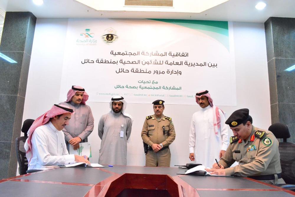 وقّعت إدارة مرور منطقة حائل، والمديرية العامة للشؤون الصحية، اليوم (الثلاثاء)، اتفاقية تعاون مشترك في فرض عقوبات بديلة تلزم المخالفين مروريًا بالخدمة المجتمعية داخل المستشفيات، والاستفادة من برامج توعوية وتثقيفية عن الالتزام بأنظمة السلامة المرورية، حيث وقع من جانب المرور مدير عام مرور منطقة حائل العقيد دحيم الشبرمي، ومدير عام الشؤون الصحية بالمنطقة حمود الشمري، وبحضور مدير ادارة الابداع والمشرف على المشاركة المجتمعة بصحة حائل هشام التميمي.
